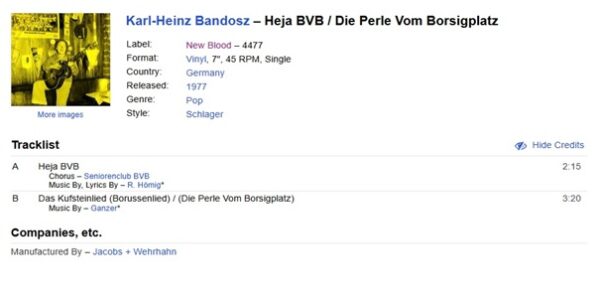 „NEW BLOOD Schallpatten zum Lied Heja BVB angegeben“
